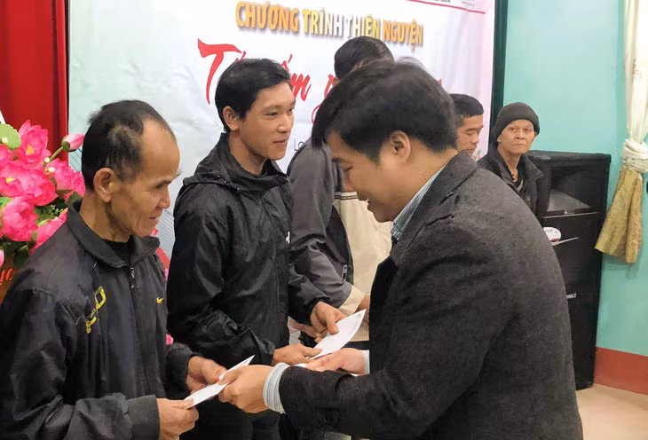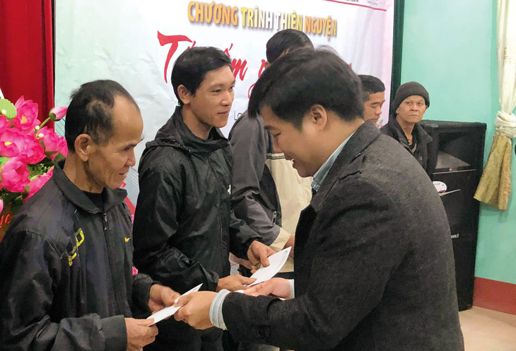 Tổng biên tập Báo Đấu thầu Đỗ Xuân Khánh trao quà Tết cho hộ nghèo tại huyện Nam Đàn. Ảnh: Tường Lâm