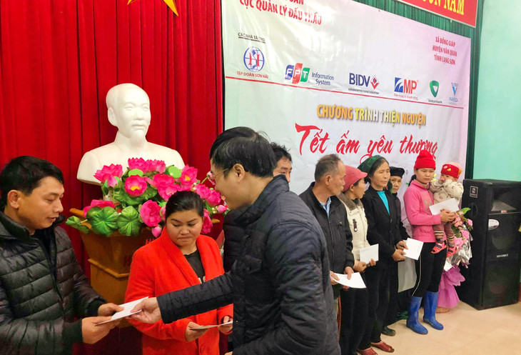 Phó Cục trưởng Cục QLĐT Nguyễn Anh Tuấn trao quà Tết Kỷ Hợi cho các hộ nghèo huyện Văn Quan. Ảnh: Hà Thắng
