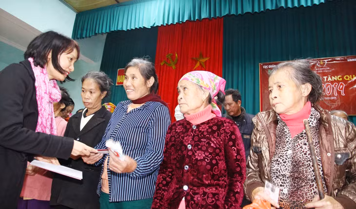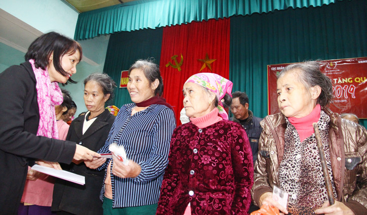 Phó Cục trưởng Cục QLĐT Nguyễn Thị Thúy Hằng trao quà Tết cho các hộ nghèo tại huyện Nam Đàn. Ảnh: Tường Lâm