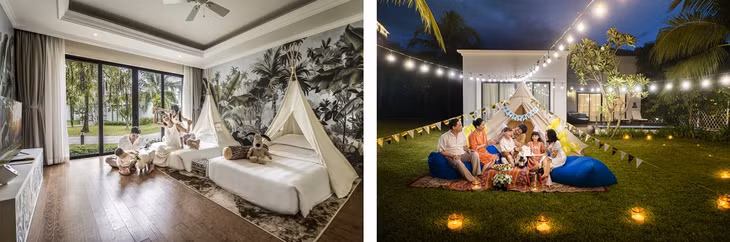 Cả gia đình sẽ được tận hưởng chuyến đi với những dịch vụ đẳng cấp tại Vinpearl từ nghỉ dưỡng biển tại những villa thiết kế mới, đầy sáng tạo theo chủ đề đại dương hay rừng nhiệt đới, trải nghiệm Glamping dưới bầu trời biển đầy sao và thưởng thức BBQ ngay trong sân vườn villa với những món hải sản tươi ngon thượng hạng như chuyến chu du sống động và lý thú qua các miền vị giác. Kỳ nghỉ sẽ thêm phần thú vị khi con trẻ được trải nghiệm văn hóa truyền thống trong không gian “xuyên không” của Tinh Hoa Việt Nam, thăm thú thiên nhiên hoang dã tại Vinpearl Safari, ngắm đại dương bao la với hàng vạn loài sinh vật tại Cung điện Hải Vương. Tại đây cũng có đa dạng lựa chọn nhà hàng Á Âu và các món ăn đặc sản Phú Quốc như Bún Quậy, Hải Sản Hàm Ninh, Lẩu Nấm Tràm, Bò Tơ… để cả gia đình cùng thưởng thức.