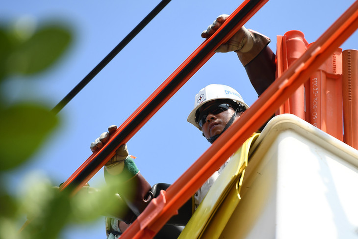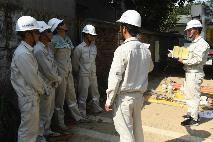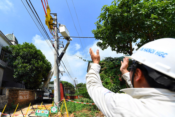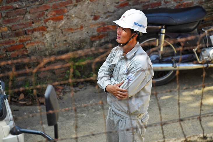 Gần một tháng nay, Tới và 12 anh em trong đội sửa chữa điện hotline Hà Nội gần như không có ngày nghỉ. Hà Nội ghi nhận chuỗi ngày nắng nóng kéo dài với nhiệt độ và mức tiêu thụ điện lập đỉnh trong lịch sử. Mỗi ngày, đội huy động toàn lực lượng, chia ca, thực hiện từ một đến hai công trình đấu mới đường dây. 2 phần 3 thời gian trong ngày là phơi mình giữa nắng gắt. Cả đội luôn trong tư thế túc trực đường dây nóng, sẵn sàng tỏa ra mọi ngóc ngách thủ đô khi nhận tin báo sự cố sửa chữa hay yêu cầu thao tác từ Trung tâm điều khiển của EVN Hà Nội.
