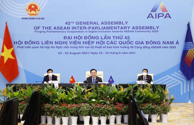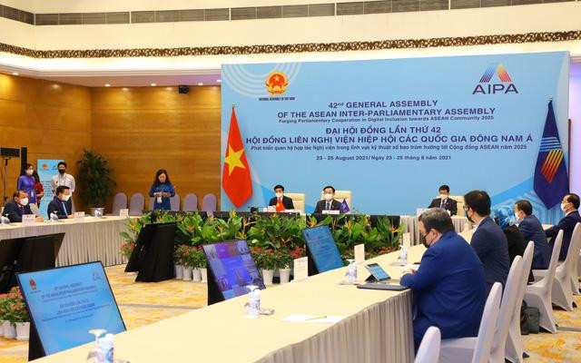 Trong chương trình Đại hội đồng AIPA lần thứ 42 (AIPA 42) theo hình thức trực tuyến, chiều 25/8/2021, tại Hà Nội, Chủ tịch Quốc hội Vương Đình Huệ dẫn đầu Đoàn đại biểu Quốc hội Việt Nam tham dự phiên toàn thể thứ hai với các nội dung: Thông qua báo của các Ủy ban; ký Thông cáo chung; phát biểu của người nhận giải thưởng cống hiến xuất sắc AIPA; thông báo thời gian, địa điểm tổ chức AIPA 43.