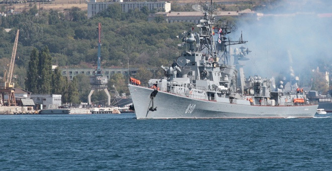 Khu trục hạm tên lửa dẫn đường Smetlivy. Ảnh: TASS.