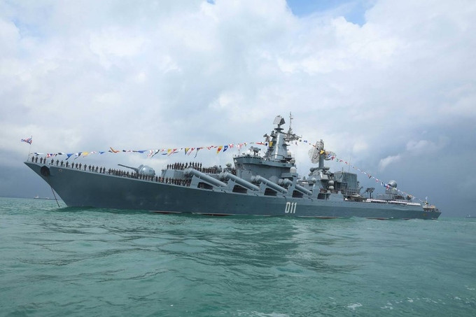 Tàu khu trục hạng nặng Moskva, soái hạm của Hạm đội Biển Đen Nga, xuất hiện tại triển lãm. Việc tham dự sự kiện này là một phần trong hành trình giao lưu hải quân tại khu vực châu Á của tàu khu trục Moskva.