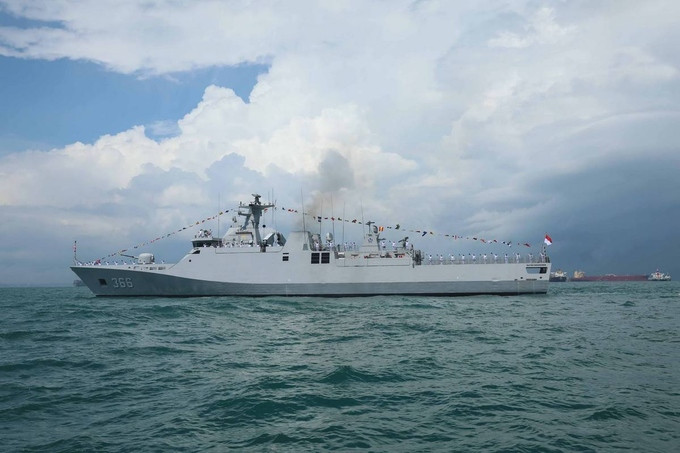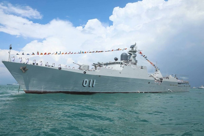Trong ảnh là tàu hộ vệ tàng hình 011 Đinh Tiên Hoàng thuộc Đề án 11661E "Gepard" của Hải quân Nhân dân Việt Nam tới Singapore tham dự triển lãm.