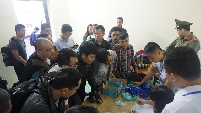 Phóng viên đang lấy thẻ tác nghiệp phiên xử