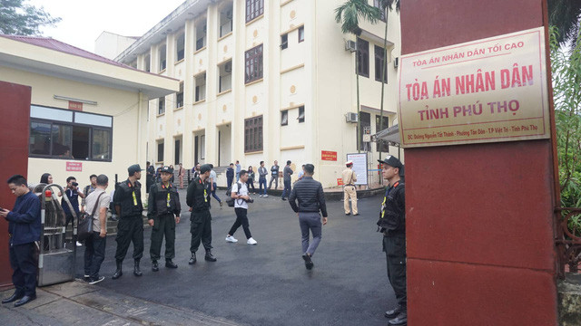 Theo ghi nhận của phóng viên, ngay từ lúc 6h30 sáng, tại TAND tỉnh Phú Thọ đã có rất đông phóng viên của các cơ quan báo chí đến tác nghiệp, lực lượng an ninh cũng làm việc từ rất sớm.