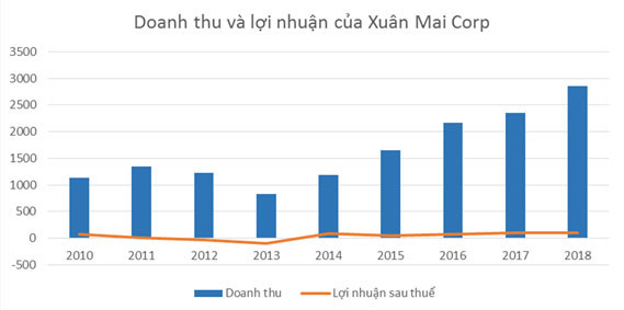 Từ năm 2013 đến nay, Xuân Mai Corp đã có 4 lần tăng vốn từ 199,9 tỷ đồng lên 549,9 tỷ đồng. Doanh thu cũng liên tục tăng trưởng, và quan trọng hơn đã thoát khỏi tình cảnh thua lỗ.