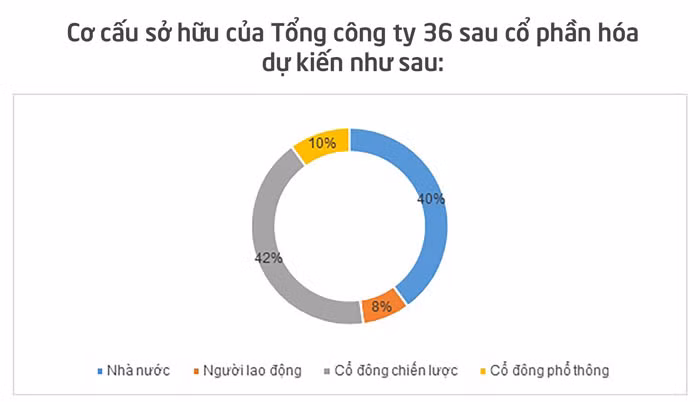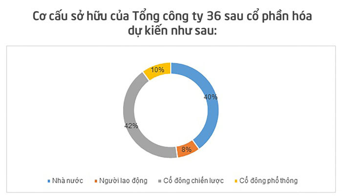 Hình thức cổ phần hóa được TCT 36 lựa chọn là bán bớt vốn nhà nước, đồng thời phát hành thêm cổ phiếu để tăng vốn điều lệ. Theo kế hoạch được đưa ra, cho đến năm 2018, TCT 36 vẫn giữ ổn định vốn điều lệ ở mức 430 tỷ đồng.