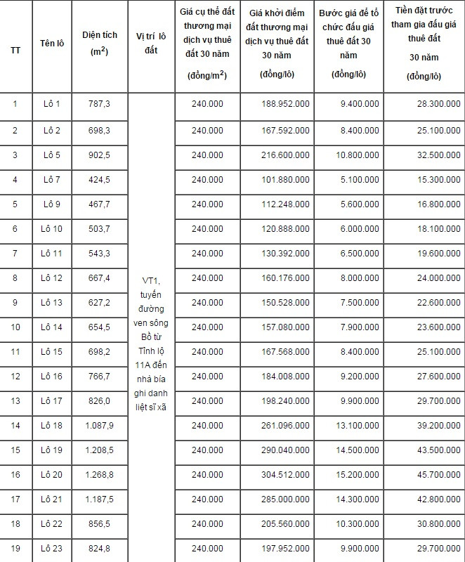 4. Phí tham gia đấu giá: 1.000.000 đồng/lô.