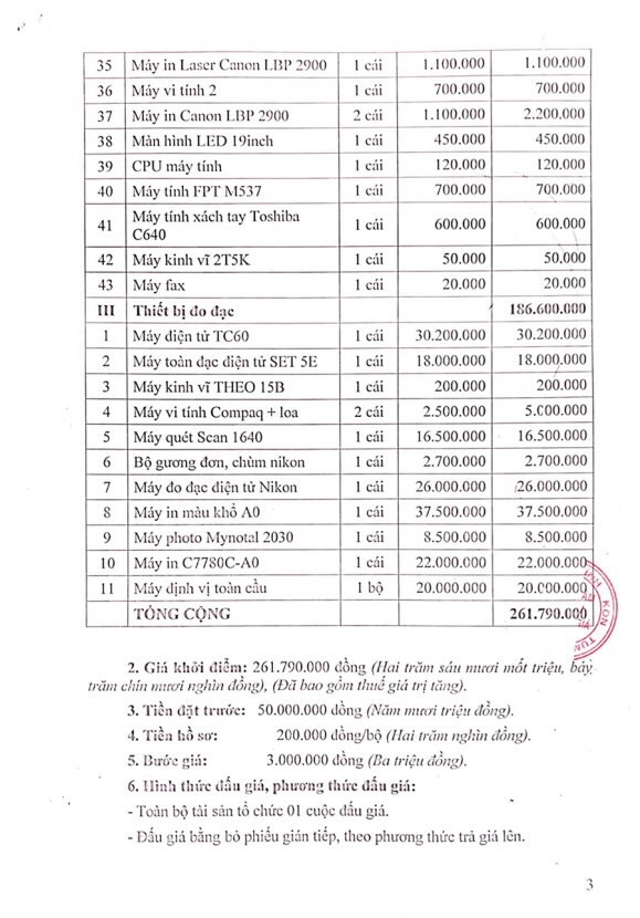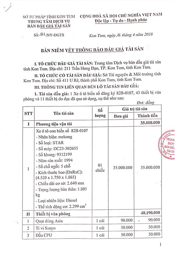 Đấu giá xe ô tô và thiết bị văn phòng tại Kon Tum