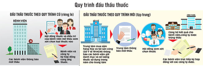 Trong khi đó, giám đốc Bệnh viện Q.Bình Thạnh Phạm Bảo Lâm cho rằng cách làm hay nhất là nên đấu thầu tập trung toàn quốc những thuốc phổ biến, số lượng lớn như dự kiến của Bộ Y tế. Sau đó các bệnh viện sẽ chủ động mua sắm thuốc, hóa chất, trang thiết bị... từ kết quả đấu thầu tập trung toàn quốc.