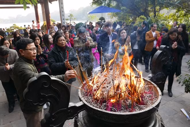 Đi lễ đền Ngọc Sơn đầu năm mới là thói quen, nét đẹp văn hóa đã có từ lâu của người Hà Nội.