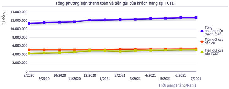 Tuy nhiên, luỹ kế 7 tháng đầu năm, tiền gửi của các tổ chức kinh tế vẫn tăng 4,25%, lên 5,09 triệu tỷ đồng; tiền gửi của dân cư tăng 2,97%, lên 5,29 triệu tỷ đồng. Như vậy, tổng tiền gửi khách hàng trong hệ thống ngân hàng tăng 3,59% lên 10,38 triệu tỷ đồng.