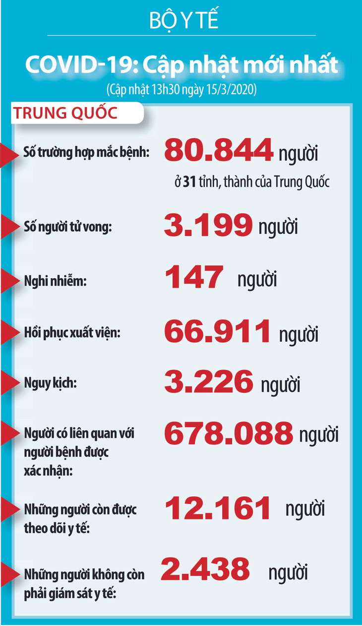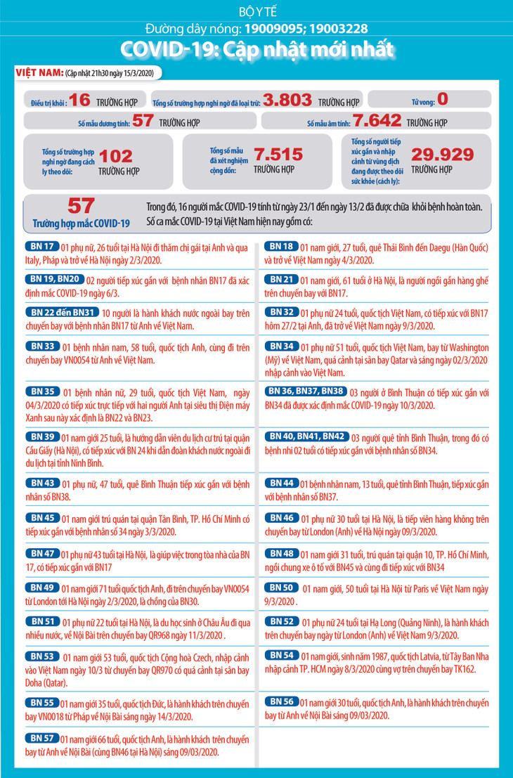 Cập nhật lúc 22h00 ngày 15/3/2020: