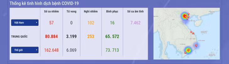 Việt Nam: 57 trường hợp mắc COVID-19.