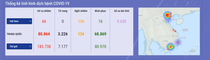 Việt Nam: 66 trường hợp mắc COVID-19.