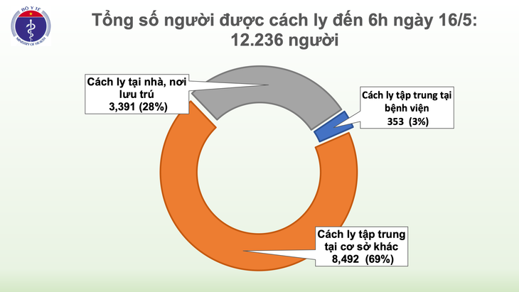 - Tính đến 6h ngày 16/5: Việt Nam có tổng cộng 174 ca nhiễm nhập cảnh được cách ly ngay.