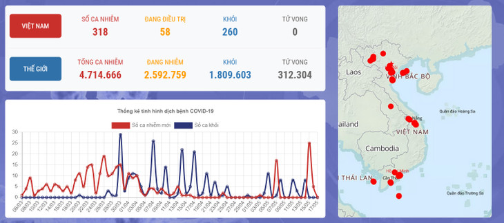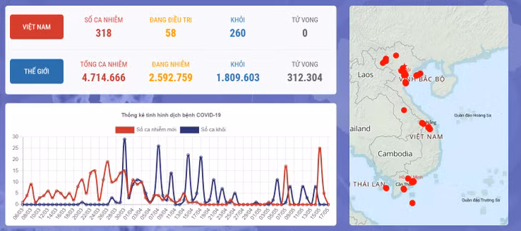 *Việt Nam: 318 trường hợp mắc COVID -19.