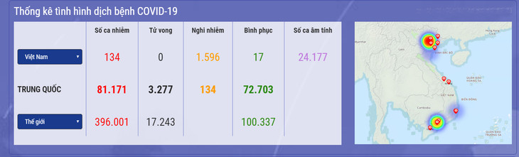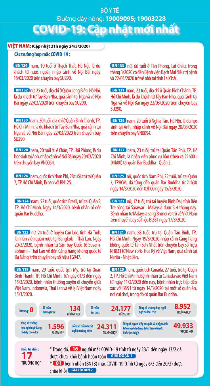 Việt Nam: 134 trường hợp mắc COVID-19. Trong đó: