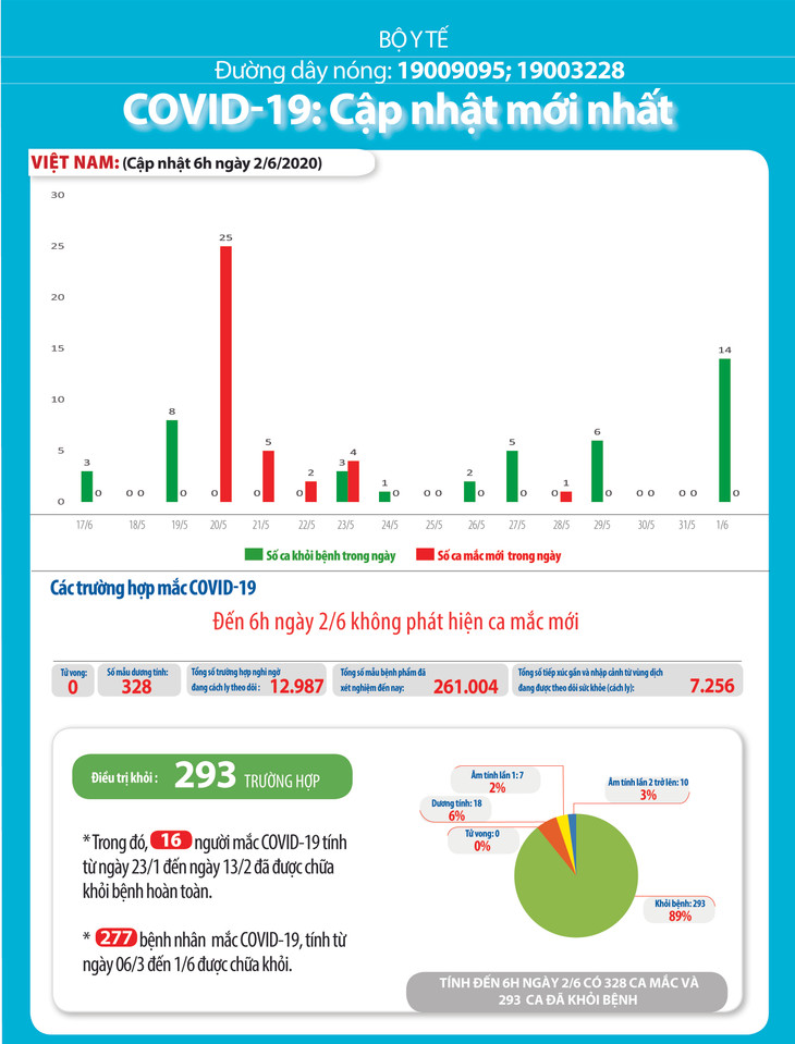 Tính từ 18h ngày 1/6 đến 6h ngày 2/6: ghi nhận 0 ca mắc mới.