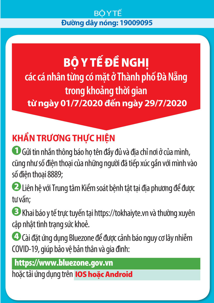 1. Gửi tin nhắn thông báo họ tên đầy đủ và địa chỉ nơi ở của mình, cũng như số điện thoại của những người đã tiếp xúc gần với mình vào số điện thoại 8889;