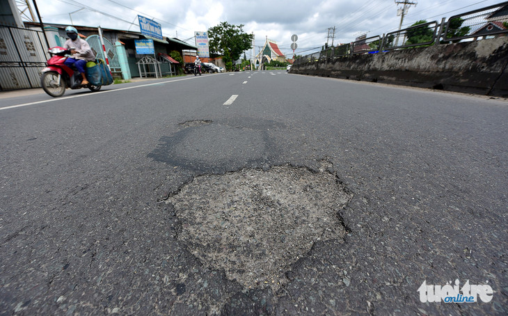 "Ổ voi" bự chảng tại đoạn Km2005+600, qua địa phận ấp 4, xã Phú An, Cai Lậy, Tiền Giang