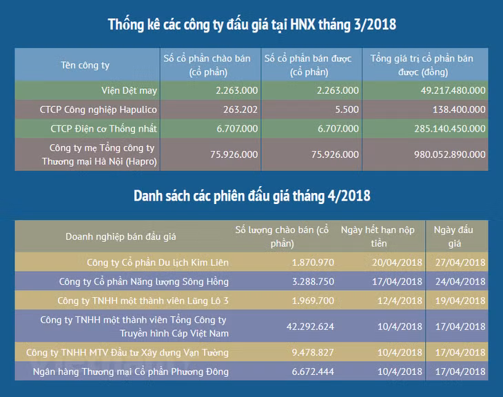 Báo cáo thống kê cho thấy, khối lượng cổ phần đưa ra đấu giá trong tháng Ba đạt hơn 85 triệu cổ phần (gấp gần 2 lần so với tháng Hai) và thu hút được sự quan tâm lớn từ phía các nhà đầu tư, do đó khối lượng đạt mua cao gấp 1,35 lần khối lượng chào bán.