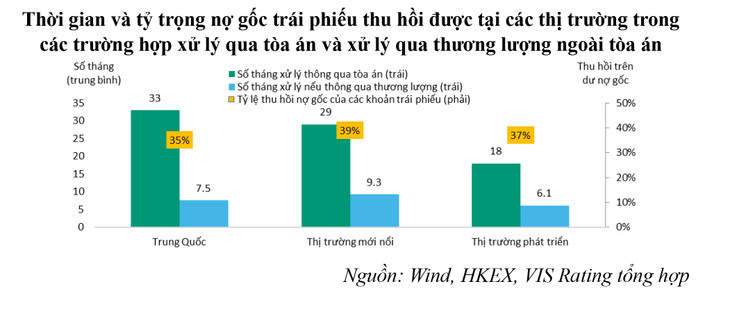 Các diễn biến về thương lượng xử lý trái phiếu doanh nghiệp không trả được gốc/lãi tại Việt Nam hiện tại không có sự khác biệt lớn với các thị trường khác. Tại thị trường Trung Quốc, 53% số trái phiếu mất khả năng thanh toán được thương lượng để kéo dài thời gian đáo hạn. Trong hội thảo do Hiệp hội Thị trường trái phiếu Việt Nam (VBMA) tổ chức vào tháng 6/2023, các diễn giả từ các tổ chức quốc tế (World Bank, Nomura Research Institution) và các đại diện ngân hàng từ Trung Quốc đều thống nhất quan điểm về việc xử lý trái phiếu mất khả năng chi trả thông qua thương lượng ngoài tòa án là phương pháp tốt nhất cho cả tổ chức phát hành và trái chủ.