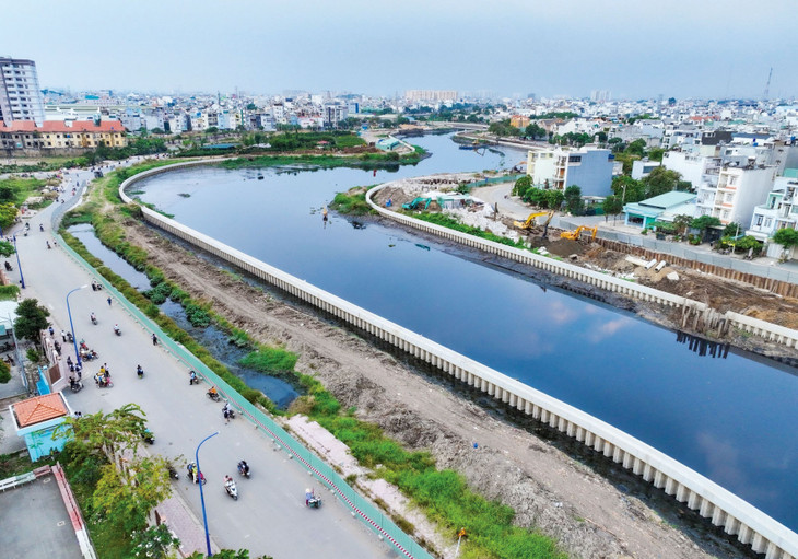 | Hai bờ kênh toàn tuyến đã có diện mạo hoàn toàn khác sau 1 năm thi công |