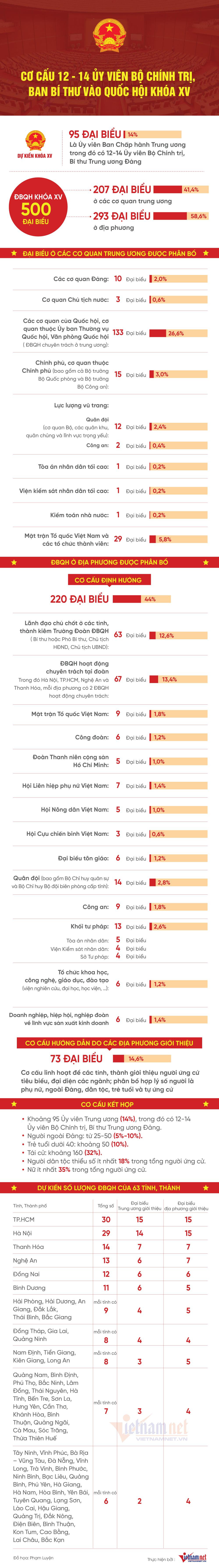 Trong đó, số lượng đại biểu ở các cơ quan trung ương là 207 đại biểu (41,4%); ở địa phương là 293 đại biểu (58,6%).