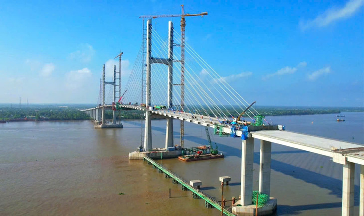 Về tiến độ thi công, đến nay toàn Dự án hoàn thành 85,0%, vượt tiến độ chung hơn 5,04% so với kế hoạch. Đặc biệt, phần cầu chính - cầu Rạch Miễu 2 đang vượt tiến độ hơn 15%.