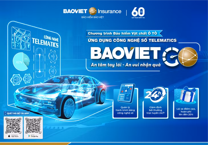 Bảo hiểm vật chất ôtô ứng dụng công nghệ quản lý hành trình BAOVIET GO với nhiều đặc quyền dành riêng cho khách hàng: Tiên phong trải nghiệm ứng dụng công nghệ Telematics; Đo lường kỹ năng lái xe an toàn bằng AI; Phí bảo hiểm cạnh tranh. Đây là chương trình bảo hiểm theo hành vi lái xe (Pay how you drive), phí bảo hiểm được tính dựa trên cách bạn lái xe khi đi trên đường, bạn lái xe càng tốt và an toàn, bạn càng tiết kiệm được phí bảo hiểm phải thanh toán. Với công nghệ Telematics, BAOVIET GO sẽ tự động tính toán điểm lái xe an toàn của khách hàng, hướng dẫn khách hàng nâng cao khả năng lái xe an toàn để nhận được số tiền giảm phí lớn nhất khi tham gia bảo hiểm xe cơ giới của Bảo Việt.