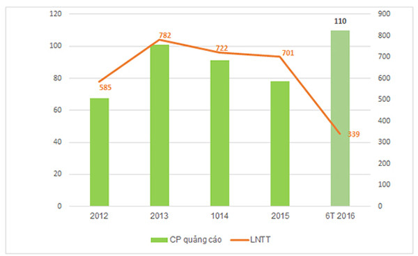 6 tháng đầu năm 2016, Dược Hậu Giang báo lãi 300 tỷ đồng sau thuế, tăng 14,5% so với cùng kỳ năm ngoái. Doanh thu bán hàng của Công ty cũng tăng 12,1%, đạt 1.839 tỷ đồng. Kết quả này có được với sự hỗ trợ đắc lực của hoạt động marketing, trong đó có quảng cáo.