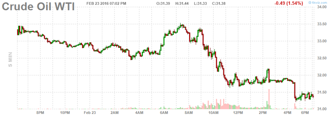 Giá dầu thô Mỹ giao tháng Tư giảm 1,52USD, tương ứng 4,6%, xuống 31,87USD/thùng trên sàn New York Mercantile Exchange.