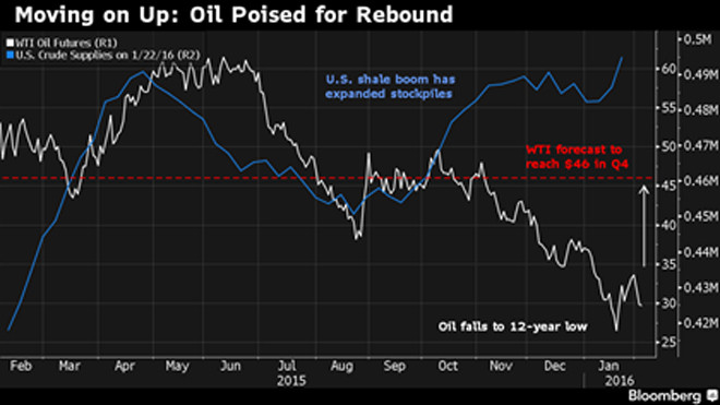 Theo các nhà phân tích, giá dầu có thể tăng hơn 15 USD/thùng cho tới cuối năm 2016. Giá dầu thô tại New York sẽ chạm mức 46 USD/thùng trong quý IV năm nay, trong khi dầu brent tại London sẽ giao dịch ở mức 48 USD/thùng cùng thời gian, theo dự báo của 17 chuyên gia tham gia khảo sát của Bloomberg.