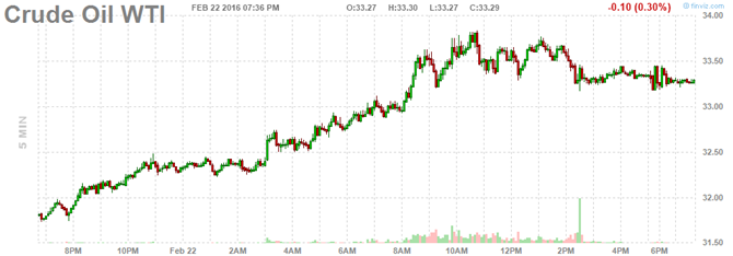 Giá dầu thô Mỹ giao tháng Ba tăng 1,84USD, tương ứng 6%, lên 31,48USD/thùng trên sàn New York Mercantile Exchange. Đây là mức cao nhất hơn 2 tuần qua. Hợp đồng đáo hạn vào thứ Hai.