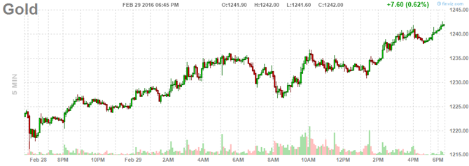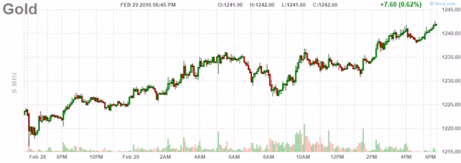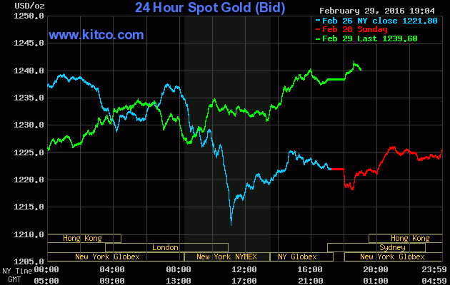 Giá vàng giao tháng Tư tăng 14USD, tương đương 1,2%, lên chốt tại 1.234,4USD/oz trên sàn Comex tại Sở giao dịch chứng khoán New York Mercantile.