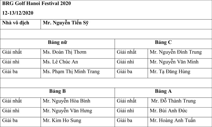 | Những golfer xuất sắc nhất Bảng C của BRG Golf Hanoi Festival 2020 |