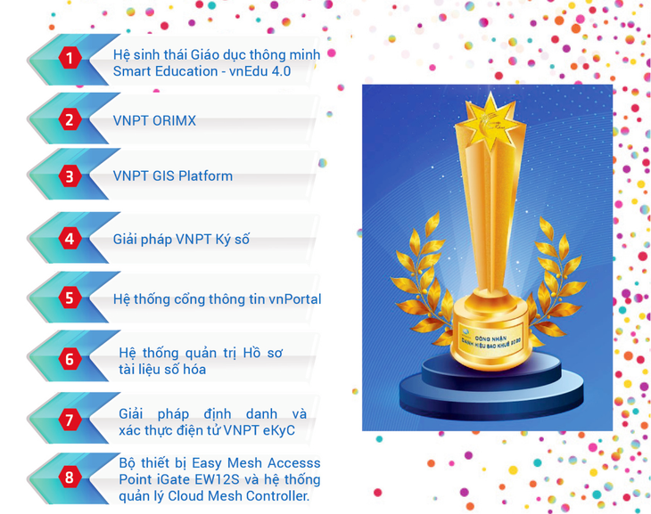 Là một trong 10 sản phẩm nổi bật nhất được vinh danh tại Sao Khuê 2020, Hệ sinh thái Giáo dục thông minh Smart Education - vnEdu 4.0 chính là một trong số rất nhiều thành quả nổi bật của VNPT trong nỗ lực trở thành một Tập đoàn hàng đầu về chuyển đổi số khi giải pháp đã thể hiện những ưu điểm vượt trội, ứng dụng công nghệ tiên tiến nhất như công nghệ AR/VR, TEXT TO SPEECH, SAAS, Blockchain, IOT, AI. Đến thời điểm hiện nay, hệ sinh thái Giáo dục thông minh Smart Education - vnEdu 4.0 đã được triển khai rộng rãi tại 63/63 tỉnh thành cho 20 nghìn trường học, 6 triệu học sinh, 650 nghìn giáo viên.
