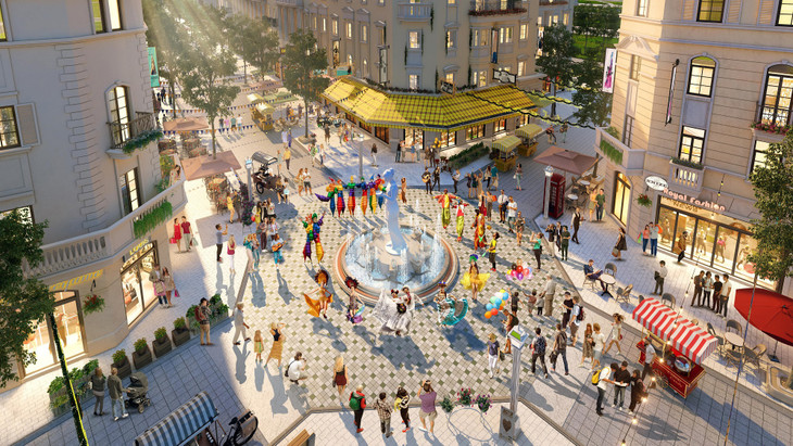Được biết, tổ hợp nhà phố thương mại cao cấp này sẽ tái hiện diện mạo và sắc màu văn hóa 5 châu lục trên thế giới. Riêng khu châu Âu, thời thượng nhất là tiểu khu Élyseé lấy cảm hứng từ đại lộ Champs Elysees – Paris hoa lệ.
