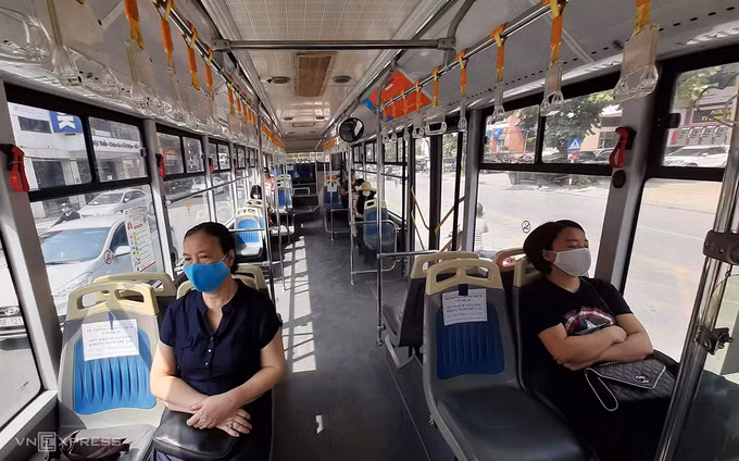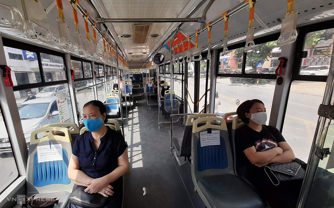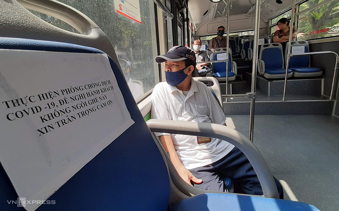 Tài xế xe buýt nhanh Nguyễn Chí Thanh cho biết "trong khung giờ cao điểm sáng nay, trung bình mỗi chuyến chở khoảng hơn 20 người; trước đó khi chưa có dịch thường chật kín với trên 60 hành khách".