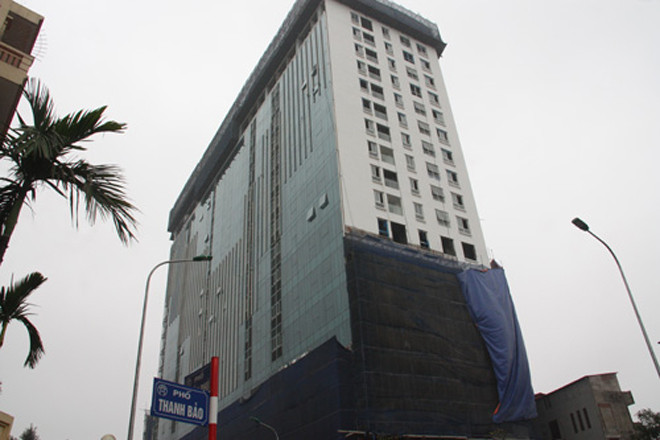 | Nhà 8B Lê Trực cơ bản hoàn thành mặt ngoài mới bị phát hiện sai phạm. Ảnh: Võ Hải. |