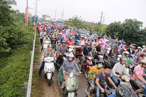 Đoạn cầu vượt đường sắt Yên Nghĩa - Hà Đông, cạnh khu đô thị The Spark nhiều phương tiện không thể di chuyển phải dừng đỗ trên cầu. Ảnh: Thu Hiền