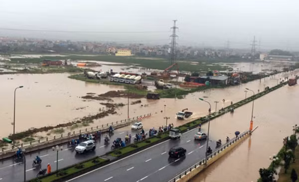 Quốc lộ 6 tắc đường kéo dài 5-6 km do có nhiều đoạn bị ngập. Ảnh: Phong Vân