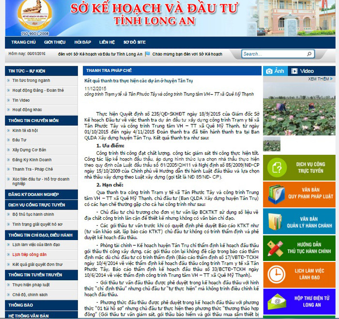 Qua hai dự án này, với những vấn đề đã được chỉ ra ở trên, Thanh tra của Sở Kế hoạch và Đầu tư tỉnh Long An cho rằng, Ban QLDA Xây dựng huyện Tân Trụ chưa thực hiện đúng trách nhiệm của chủ đầu tư trong công tác khảo sát được quy định tại Khoản 2, Điều 50 của Luật Xây dựng số 16/2003/QH11; chưa thực hiện đúng quy định tại Khoản 1, Điều 11 của Nghị định số 85/NĐ-CP. Đặc biệt, với gói thầu tư vấn đấu thầu, từ “chỉ định thầu” chuyển qua “tự thực hiện”, hay như phương thức đấu thầu được phê duyệt trong kế hoạch đấu thầu là “01 túi hồ sơ” nhưng chủ đầu tư thực hiện theo phương thức “thương thảo hợp đồng” là chưa thực hiện đúng kế hoạch đấu thầu được phê duyệt. Riêng Phòng Tài chính - Kế hoạch huyện Tân Trụ với những sai sót như trên là chưa thực hiện đúng quy định tại Điểm a, Khoản 1 Điều 12 của Nghị định số 85/NĐ-CP.