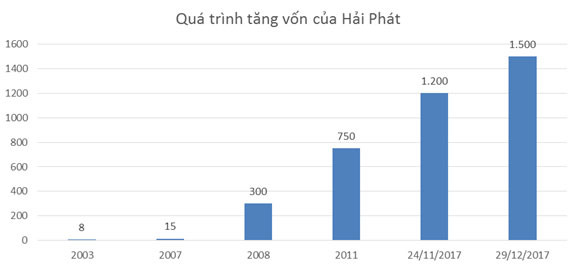 Trong tháng 7/2018, Công ty đã chính thức niêm yết 150 triệu cổ phiếu trên sàn chứng khoán TP.HCM với mức giá tham chiếu là 26.800 đồng/CP. Năm 2017, trước thời điểm niêm yết cổ phiếu HPX, Hải Phát Invest đã có đợt tăng vốn điều lệ “khủng” từ 750 tỷ đồng lên 1.500 tỷ đồng. Đợt tăng vốn này của Công ty được chia làm hai lần. Đợt 1, tăng vốn từ 750 tỷ đồng lên 1.200 tỷ đồng thông qua việc trả cổ tức bằng cổ phiếu cho cổ đông hiện hữu theo tỷ lệ 5:3 từ nguồn lợi nhuận sau thuế chưa phân phối. Đợt 2 được thực hiện bằng việc chào bán cổ phần riêng lẻ cho nhà đầu tư chiến lược và thu về 300 tỷ đồng.