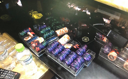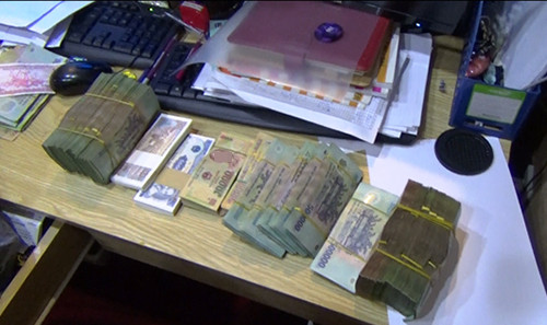 Tang vật cảnh sát thu tại đây gồm hàng trăm triệu đồng tiền mặt, ngoại tệ, phỉnh nhựa các mệnh giá và nhiều dụng cụ phục vụ việc đánh bạc.