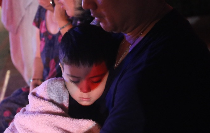 Sau nhiều giờ hoảng loạn, nhiều bé mệt quá ngủ ngon giấc trên tay cha mẹ.