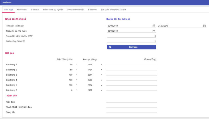 Bên cạnh đó, EVN HANOI cung cấp công cụ tính giá điện trực tuyến trên website của Tổng công ty (http://evnhanoi.com.vn/giadien), giúp khách hàng thuận tiện hơn trong việc tính giá điện sinh hoạt hàng tháng tại gia đình.